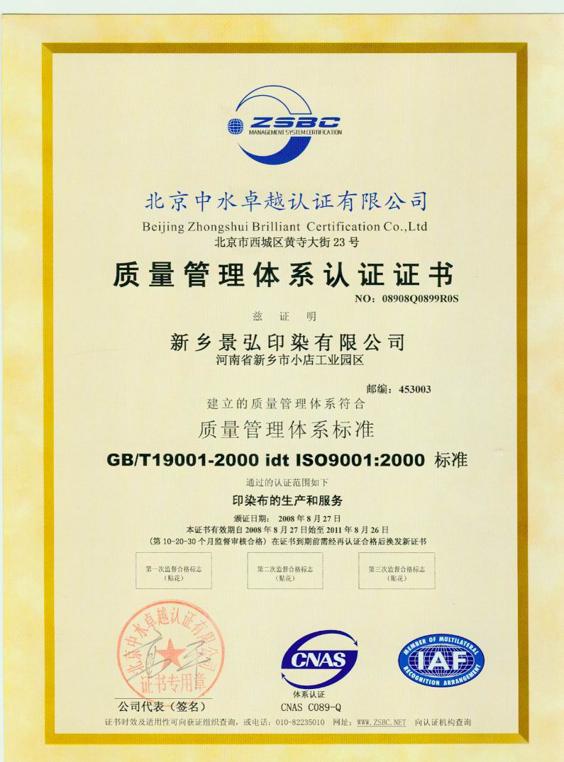 質(zhì)量管理體系認(rèn)證證書(shū)